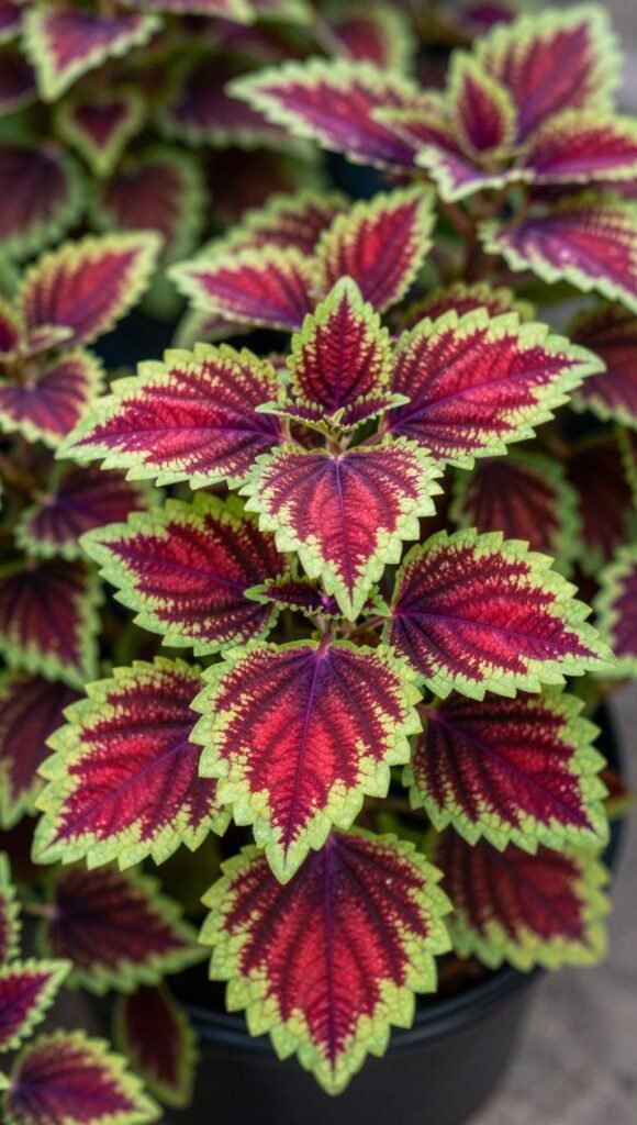 Okay, so technically not a “flower,” but who cares when the foliage is this spectacular? Coleus brings insane color, pattern, and texture to your pots, making them look instantly professional. Think reds, greens, purples, and every combo in between. Many varieties prefer shade, but some sun-tolerant types exist. Pinch off any flower spikes to encourage bushier growth and focus energy on those amazing leaves.